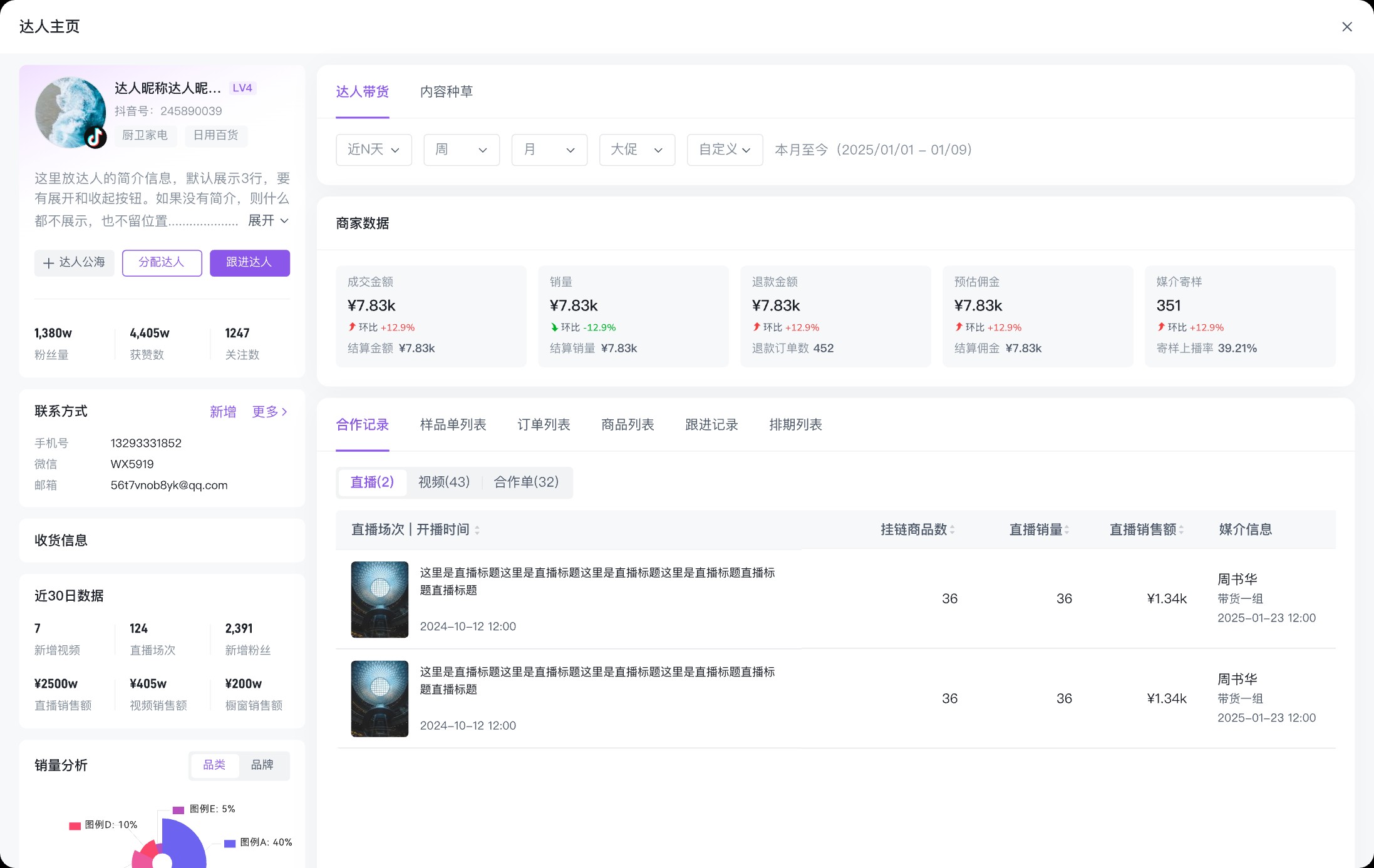 智能化一站式达人营销管理平台,帮您达人带货生意突围,内容种草品牌出圈!