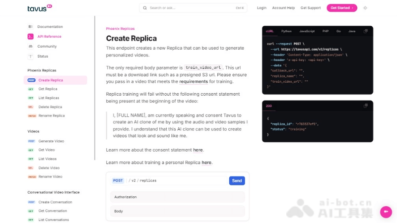 - 注册和获取 API Key:访问 Tavus 的官网注册账户,开发者可获取 API Key。