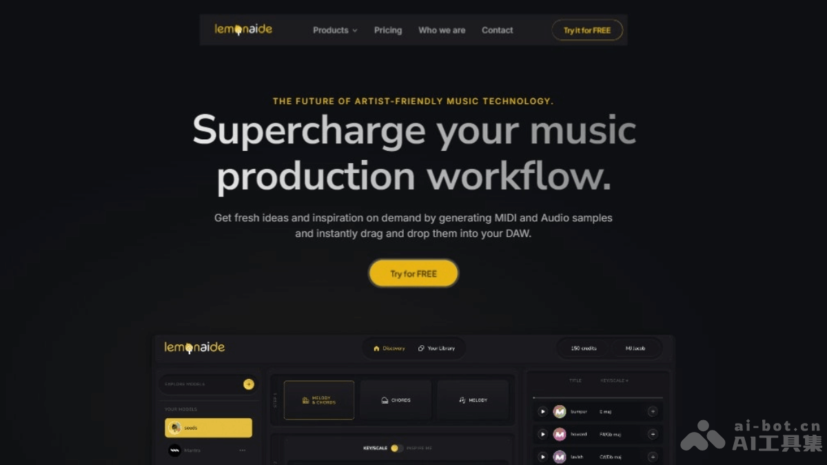 - Collab Club 模型:$9.99/每个模型每月;对于小规模使用免版税;生成旋律和和弦;每月150个积分,积分可累积;8小节生成;提供音频和MIDI循环及旋律;支持Lemonaide VST桥接。